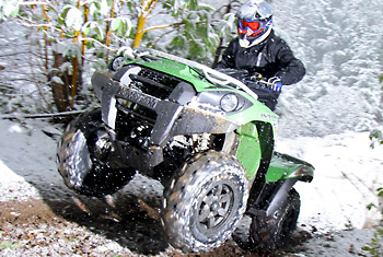 While climbing to 4000 feet elevation, fuel delivery to the Brute’s 90-degree 749cc V-twin mill was smooth and linear. There were times we were practically vertical in our ascent and right when you needed that extra burst of power, the engine never stuttered once. The Kawasaki’s power is exceptional and low-end grunt has improved to get you up and over the crest without the slightest concern.