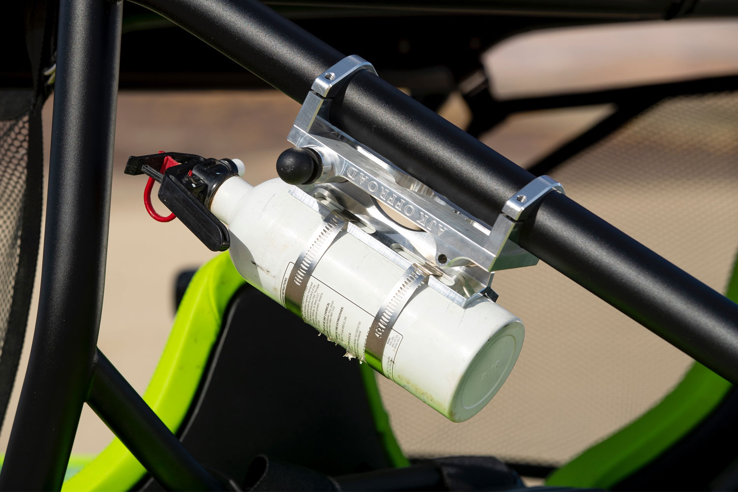 AJK OFFROAD uses a half-inch diameter heavy-duty, spring-loaded pull pin for a quick, smooth, and effortless release. Range of base clamp options available. The universal strap clamp will fit around most roll cages for a snug fit. Standard base clamps for 1.50, 1.75, or 2-inch diameter tubing are also available for custom fits.